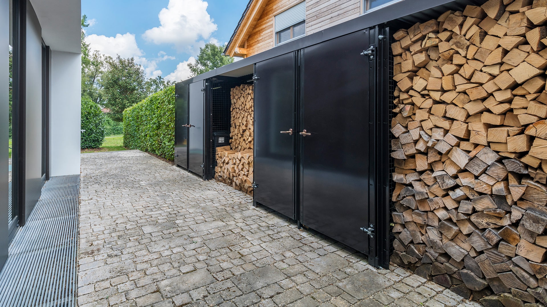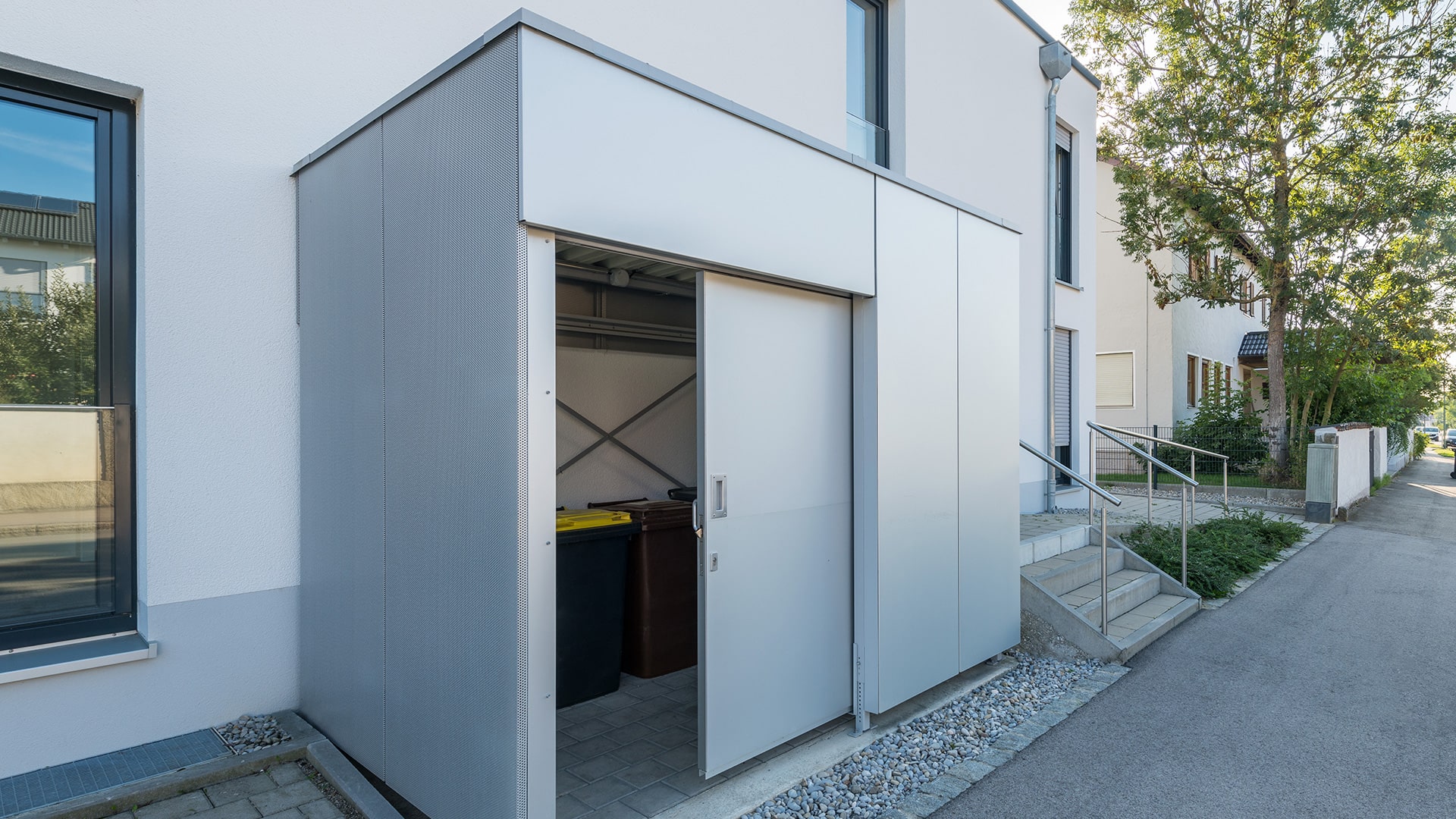 Dank flexibler Modulbauweise sind maßgeschneiderte Grundrisse möglich, um unterschiedliche Nutzungsbereiche wie Wertstoffsammelstellen, Fahrradgaragen, Technik- und Lagerräume oder Raucherschutzbereiche optimal zu gestalten. Ergänzt wird das System durch optionalen Rammschutz, LED-Beleuchtung, Gründächer und individuelle Türen (Schiebe- oder Drehtüren).